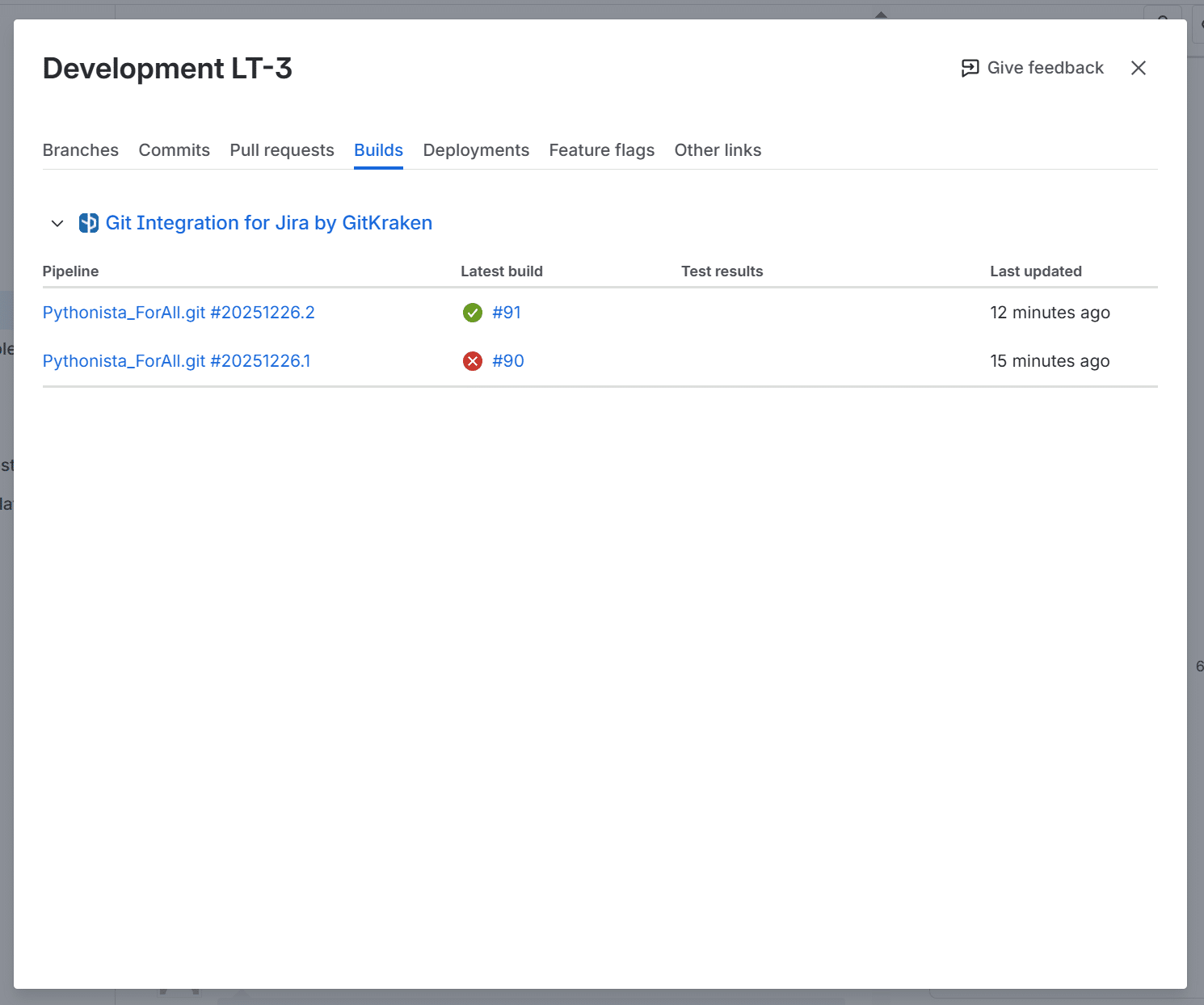 After you add the CI/CD for Jira extension from the Atlassian Marketplace, no additional steps are needed to start seeing build and deployment information in Jira. Ensure your previously connected repositories have been reindexed.