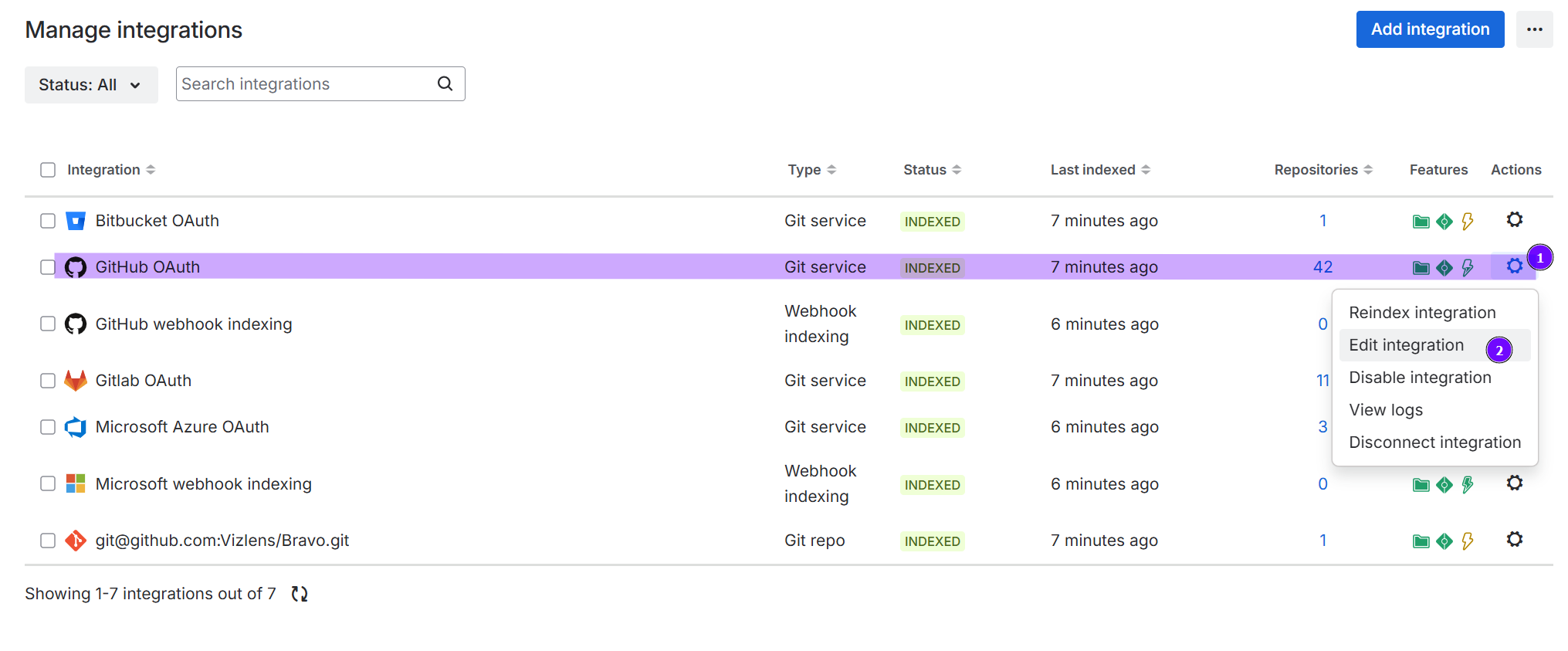 Actions ➜ Edit integration for the selected integration to open its configuration page.