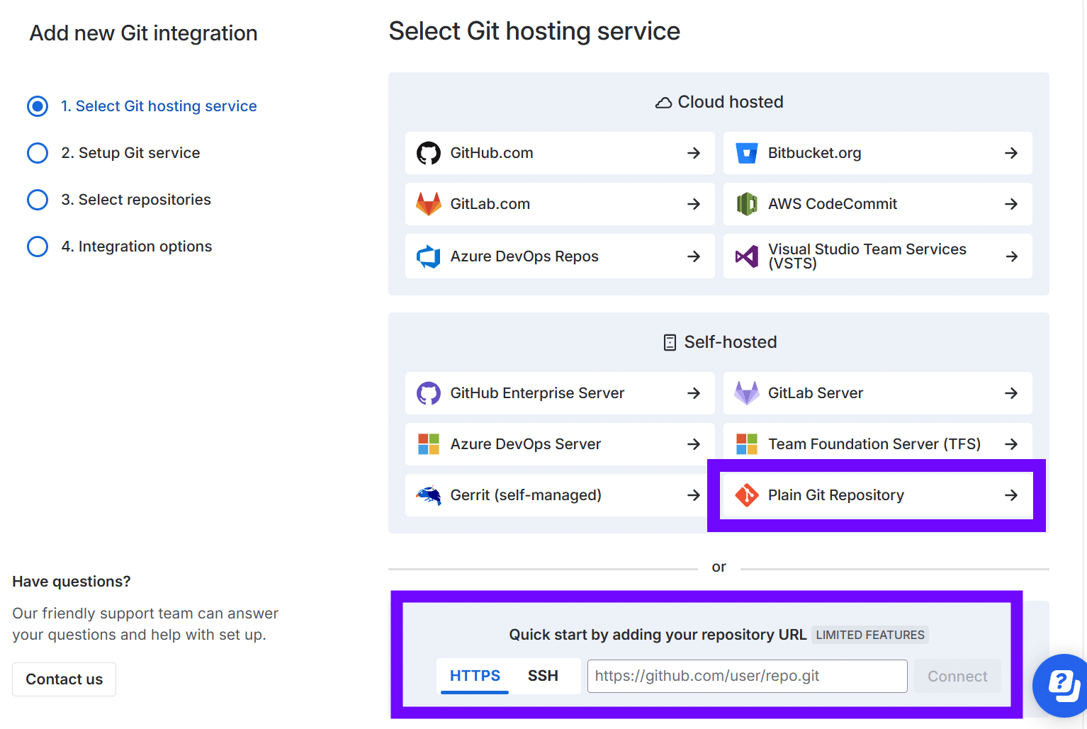 Add the repository via Plain Git integration or Quick start on the Add integration page.