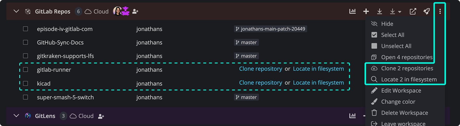 Workspaces in GitKraken Desktop