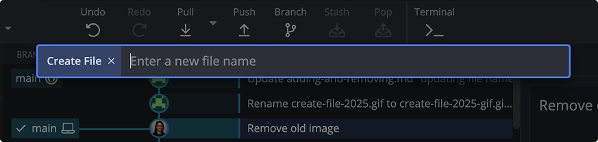 Learn how to add, create folders, delete, and filter files using GitKraken Desktop.
