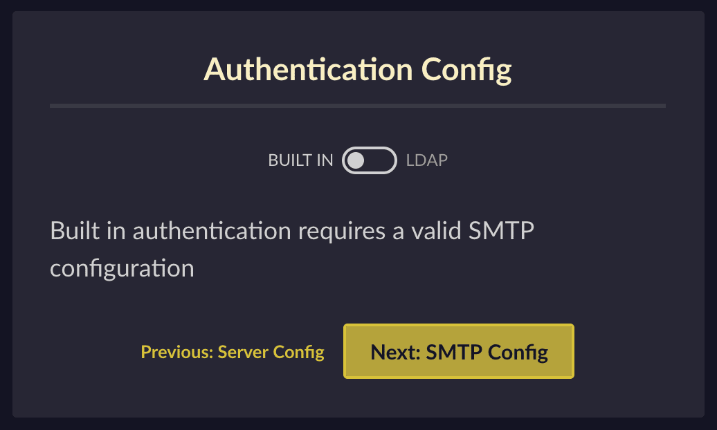 An SMTP server is required unless you’re using LDAP authentication.