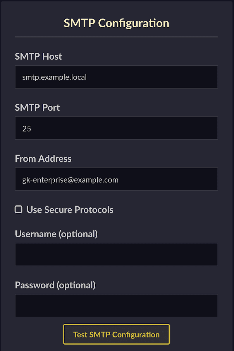 - SMTP IP address or hostname