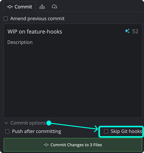 Note 📝 – This option disables all hooks triggered by the commit action.