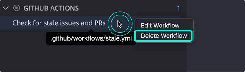 Deleting a GitHub Action workflow in GitKraken Desktop