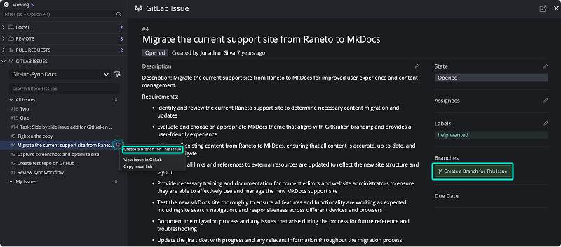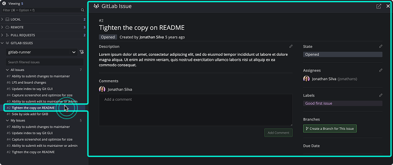 GitKraken Desktop makes it easy to integrate with GitLab Issues for seamless issue tracking and repository collaboration.